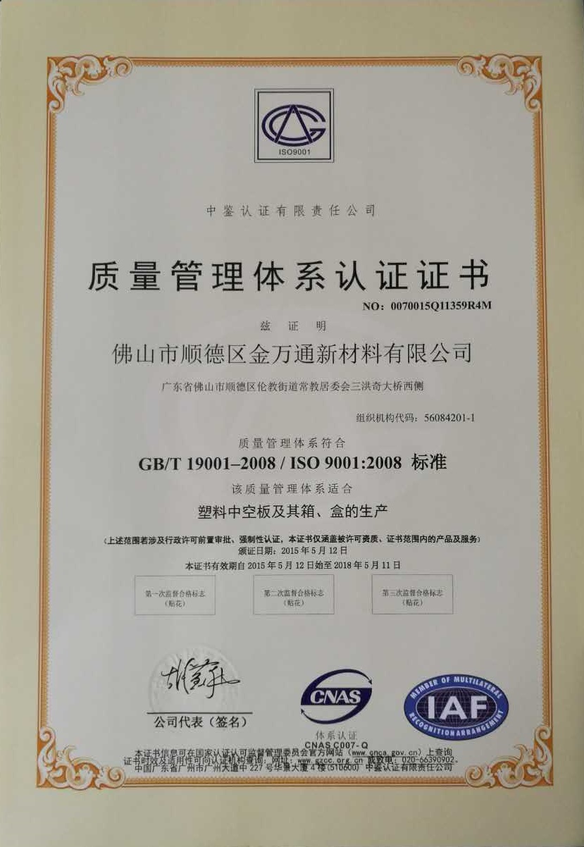 公司注册资金181万美元,公司可自营进出口业务,产品畅销欧美、意大利、澳洲、日本、新加坡及东南亚等国。公司拥有完善的质量管理体系,已通过ISO9001质量管理体系认证。公司的质量方针是:“用绿色原料,供优质板材;守法防污,创‘万通’名牌;持续改进,超值满足顾客需求”。万通牌塑料中空板已在市场打响,市场占有率逐年上升,产品质量及销售量在同行业中处于领先地位,业内人士均非常熟悉万通这一优秀品牌,并约定俗成地把塑料中空板称作“万通板”。